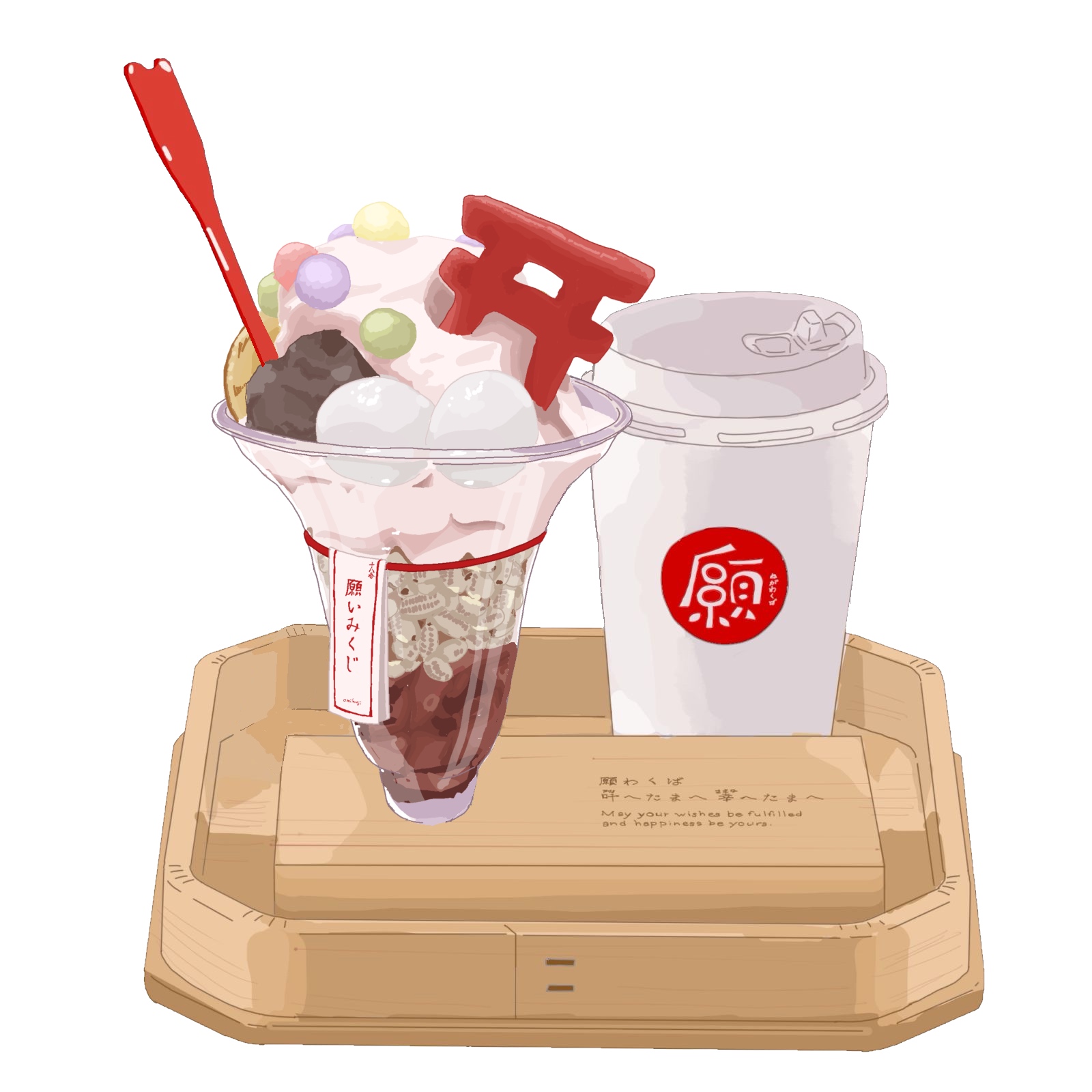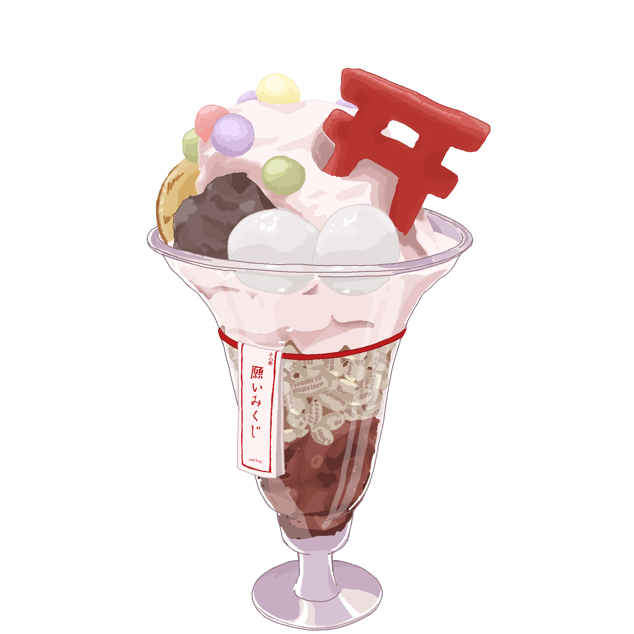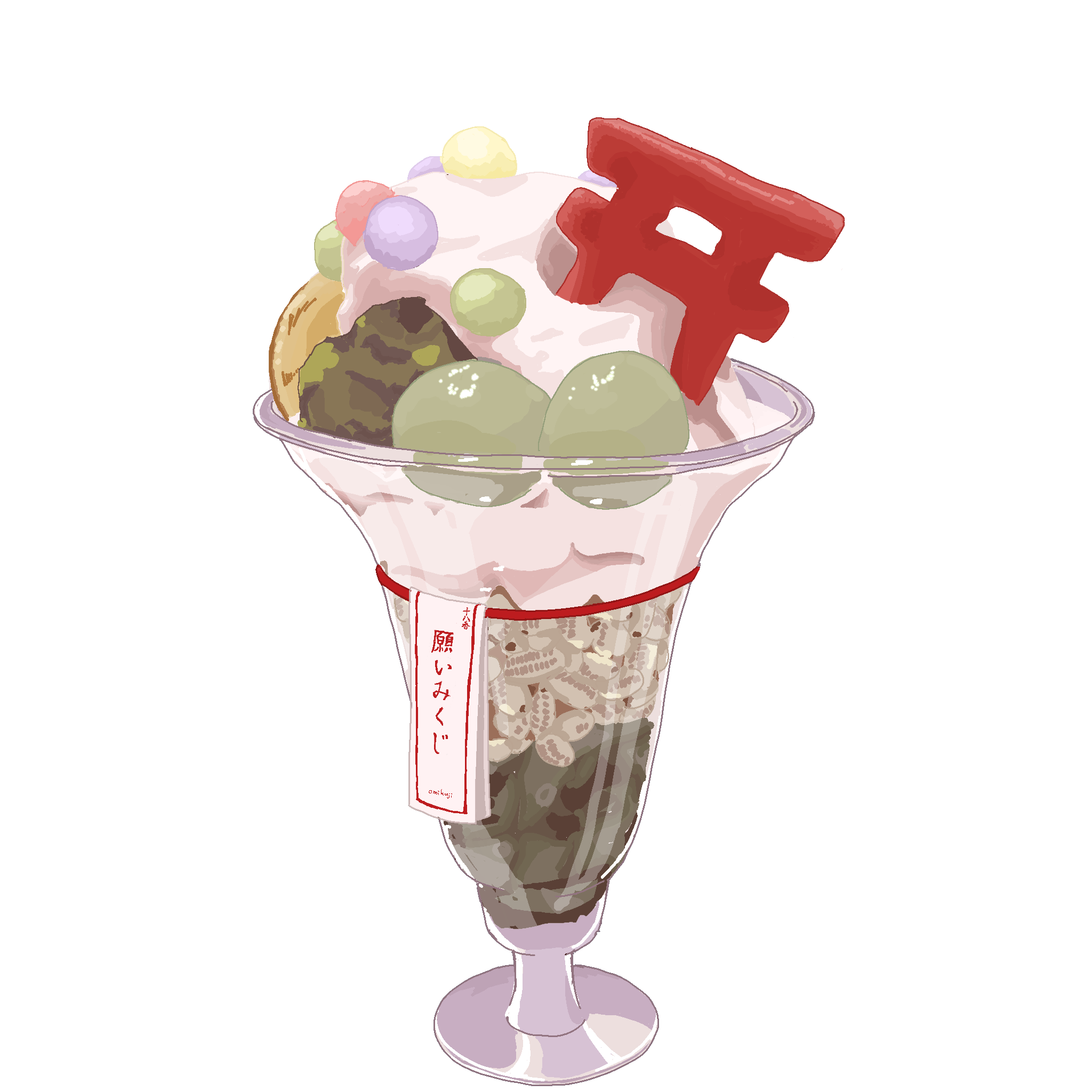 神社をイメージした鳥居のクッキーがついた、可愛い見た目のクリームソーダです。 神秘的な紫色のぶどう味は「魅力アップ」を願うのにピッタリ。奥深い上品な色合いが、内面からにじみ出る魅力を引き立ててくれます。 甘く冷たいバニラアイスがどこか懐かしさを感じさせる1杯です。